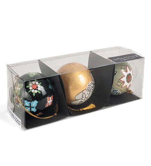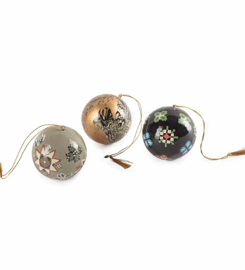 ルモンドソヴァージュの「Lot de 3 boules décoratives Minzu」は、手描きの装飾張り子ボールのセットです。インテリアに魅力を加えること間違いなしです。