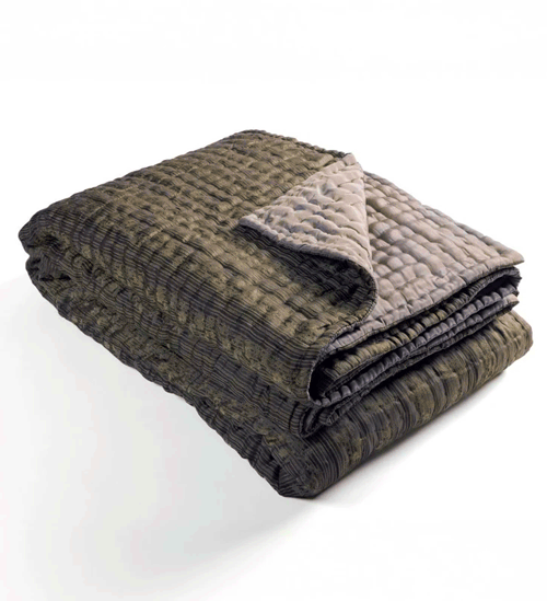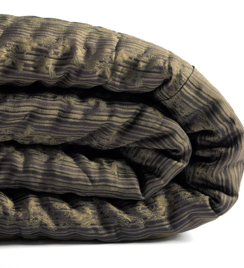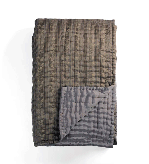 手作業で丁寧にキルティングされたこのキルトカバーは、高級感漂うシルク50%とビスコース50%の質感が魅力です。