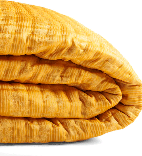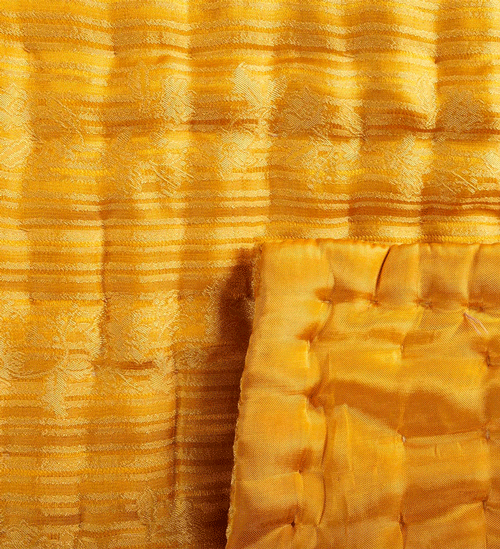 手作業で丁寧にキルティングされたこのキルトカバーは、高級感漂うシルク50%とビスコース50%の質感が魅力です。