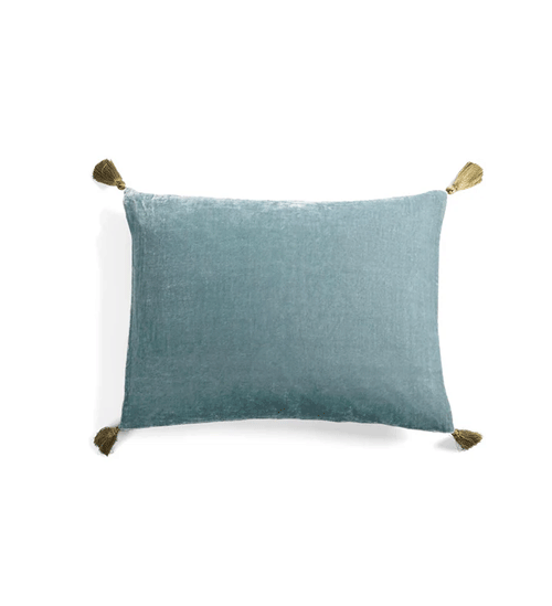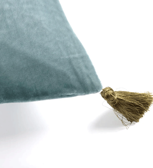 四隅にポンポンタッセルが付いたシルクベルベットのクッションです。