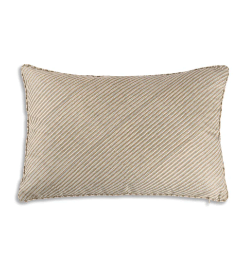 斜めのピンストライプがグラフィック効果を与え、プリントされたパイピングが上品な印象を添えています。手触りにもこだわりを感じます。