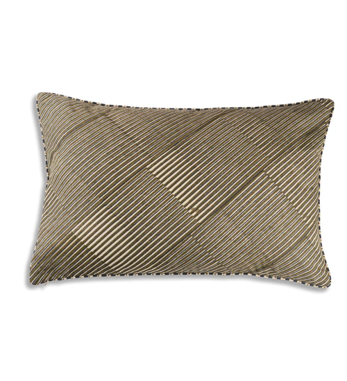 斜めのピンストライプがグラフィック効果を与え、プリントされたパイピングが上品な印象を添えています。手触りにもこだわりを感じます。