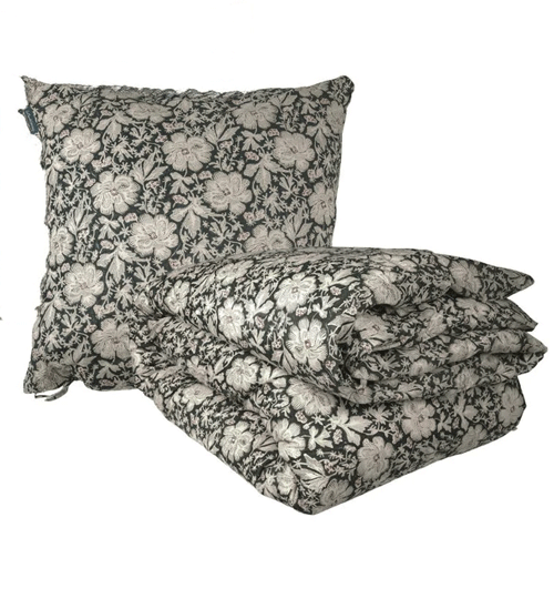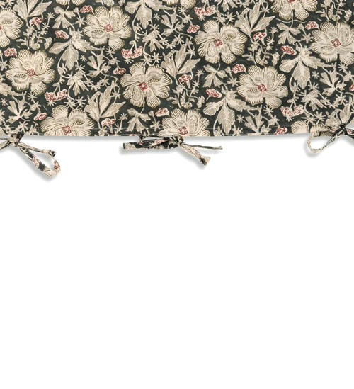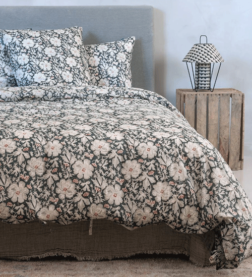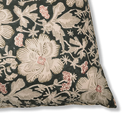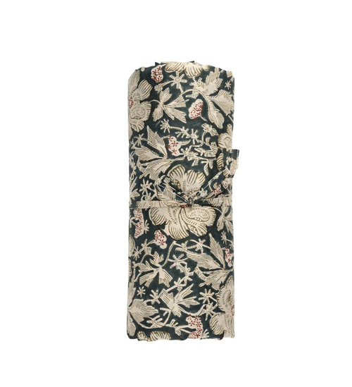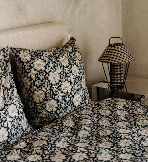 手作業のブロックプリントはブラックの花模様でとても華やかなデザイン