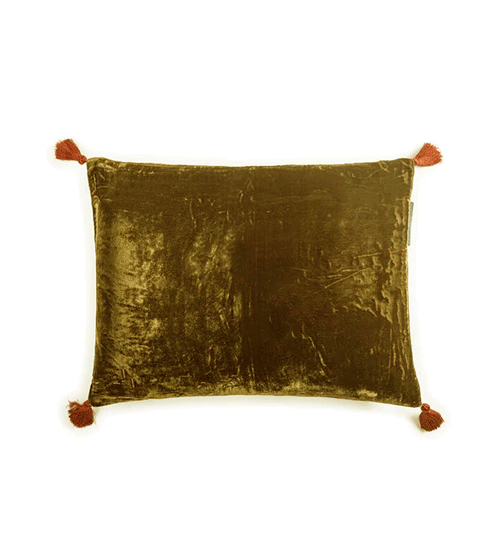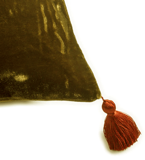 四隅にポンポンタッセルが付いたシルクベルベットのクッションです。