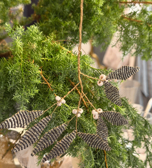デンマークデザインの洗練された美しさが詰まったこのオーナメント、BEAD MISTLETOEはヤドリギの形をした9cmの飾りです。繊細なガラスのビーズが組み合わさり、上品な輝きを放ちます。