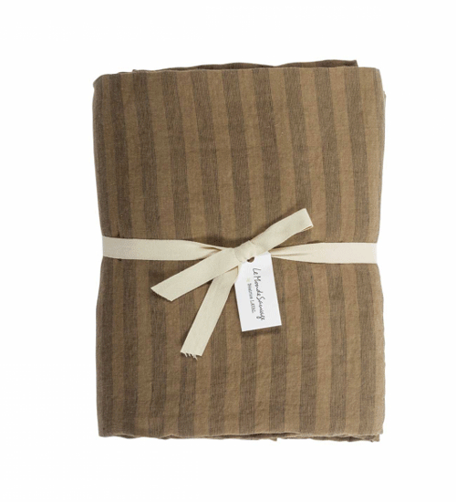 祖母のワードローブにあるような懐かしさを呼び起こすこのシーツは、色鮮やかな線が織りなすデザインが心地よいアクセント。色褪せた色調が落ち着いた雰囲気を醸し出し、インテリアに柔らかなアクセントをプラスしてくれます。