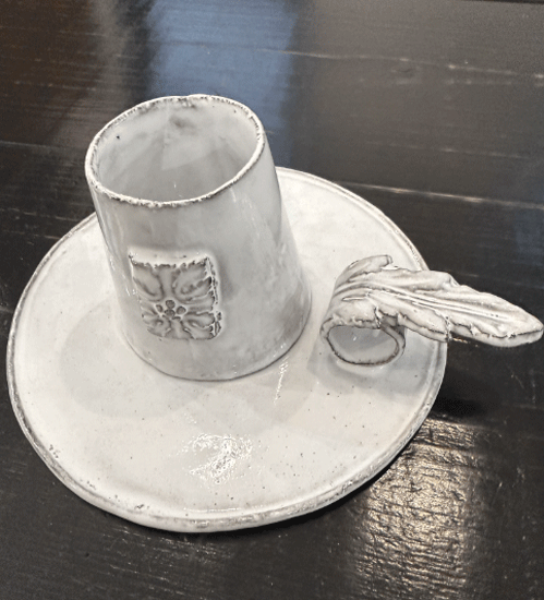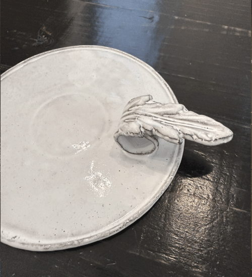 JBAdeV Feuilles soucoupe a anseは、ブルターニュの巨匠Jean Baptiste Astierde Villatte氏による作品です。お皿に取り付けられた独特の羽モチーフの持ち手が、上品な雰囲気を演出します。